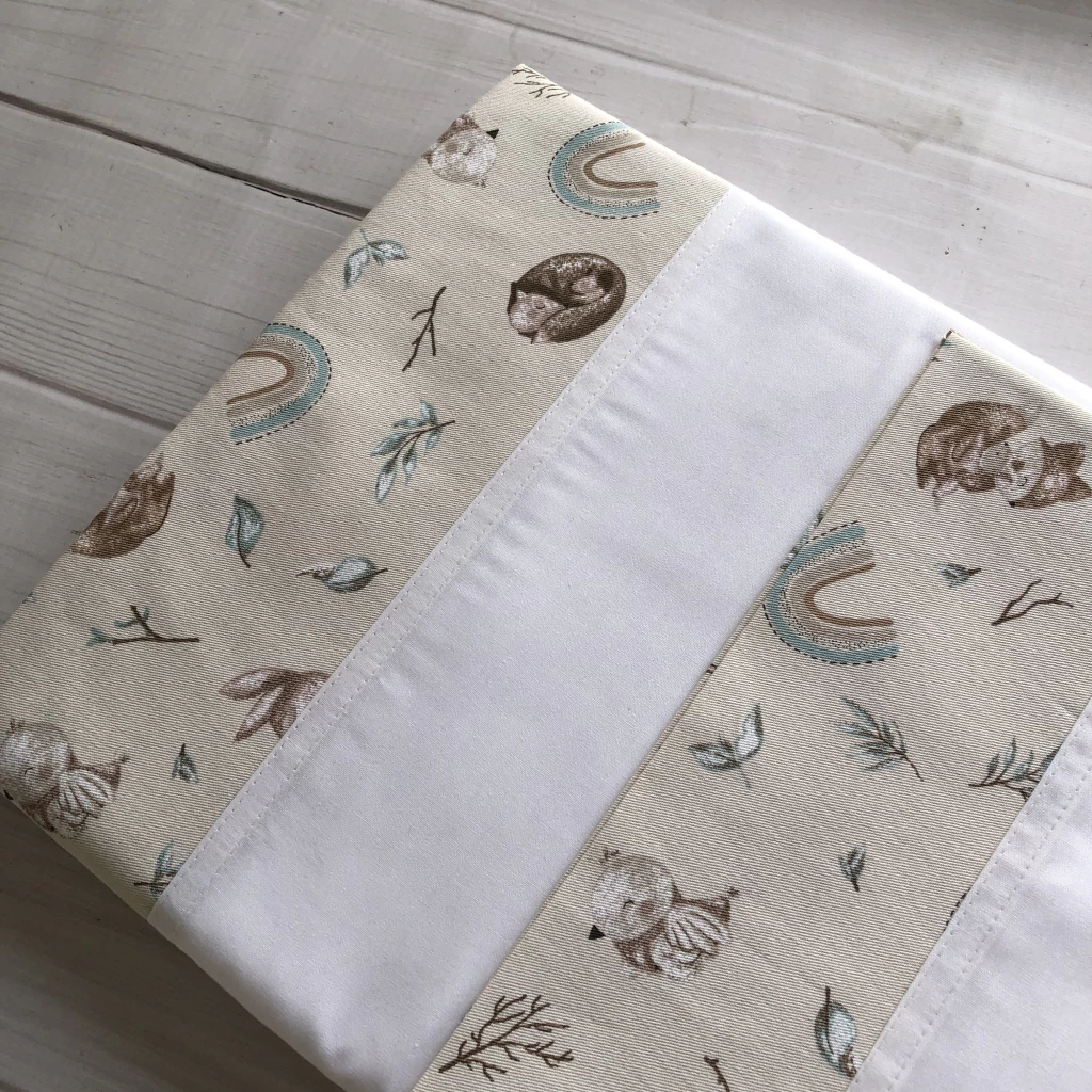 Material: 100% Algodón Incluye: Sábana ajustable con guarda estampada y funda de almohada